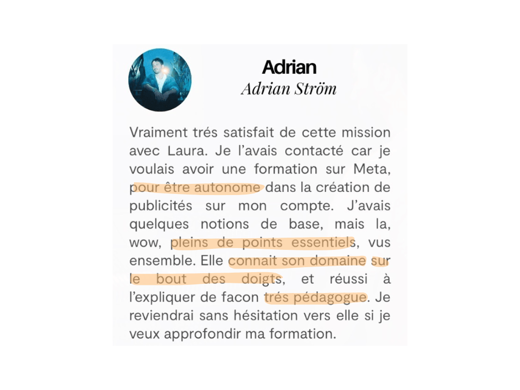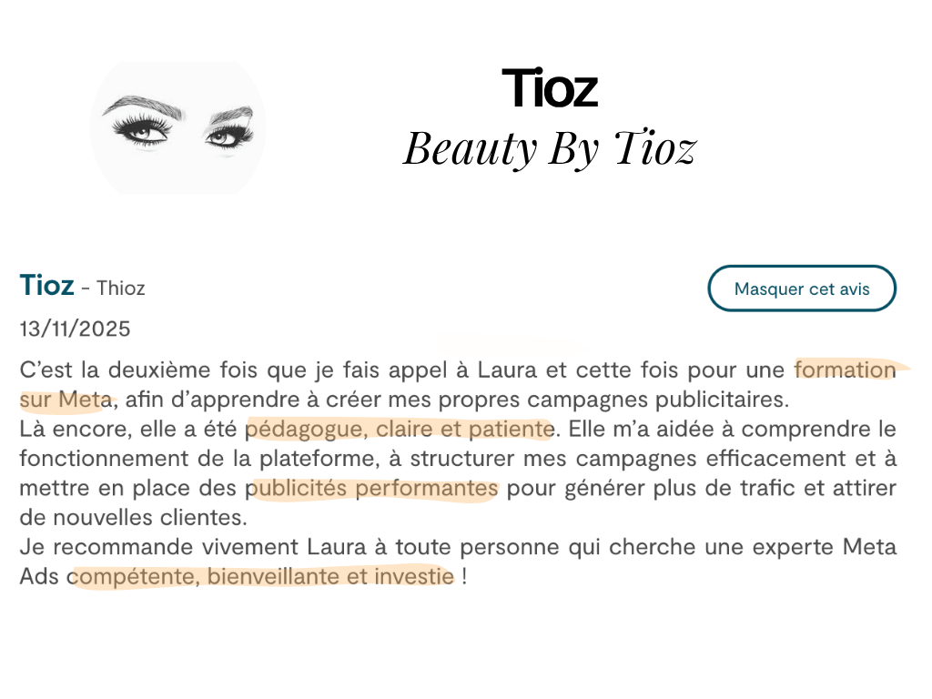 Depuis plus de 7 ans, j’accompagne entrepreneurs, e-commerçants, coachs et infopreneurs à générer plus de ventes, de leads et de visibilité grâce à des stratégies publicitaires rentables.