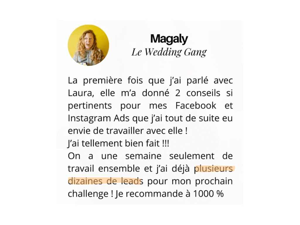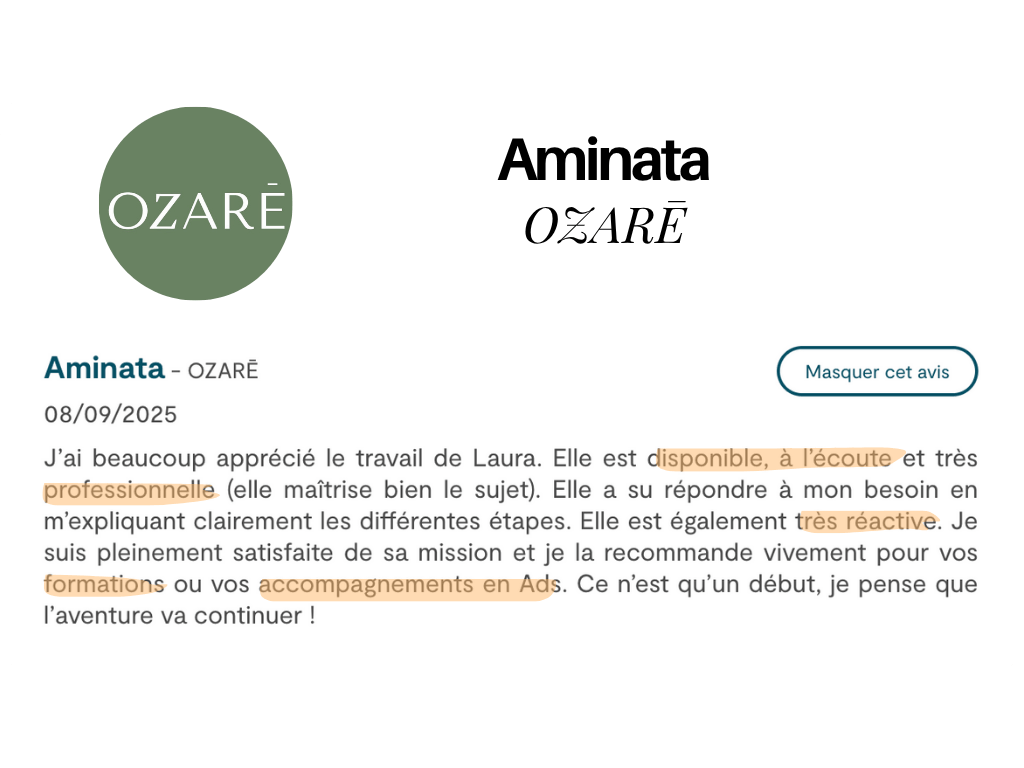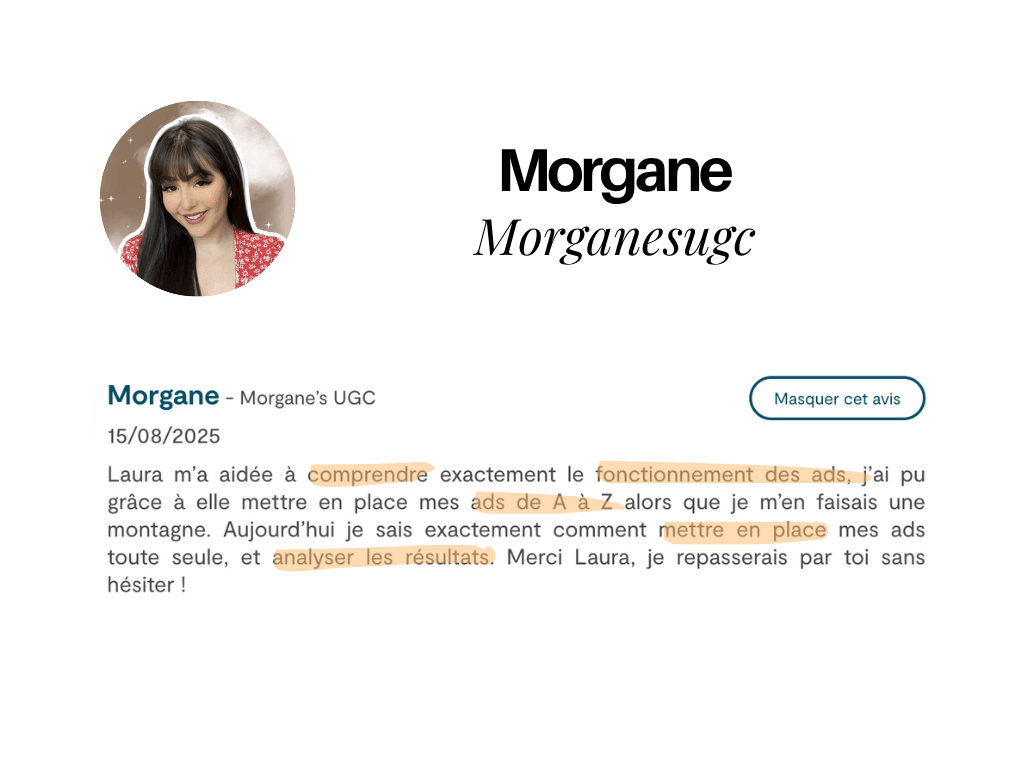 Je connais exactement vos enjeux, vos peurs, vos problématiques et vos impératifs, car je vis la même réalité au quotidien : piloter un budget pub, optimiser la rentabilité, gérer la saisonnalité, scaler sans exploser les coûts… Je suis passée par les mêmes étapes et je les traverse encore aujourd’hui.